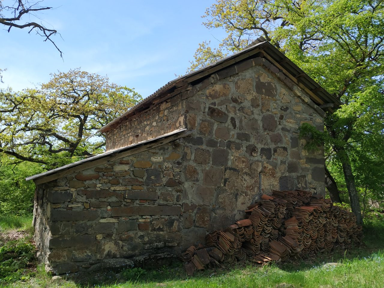 На горе Лиса, в ущелье р. Ожора, возвышается башня и пристроенная к ней церковь. Оба здания возведены из неровного камня одной и той же сланцевой породы. Церковь зальная с одним окном и дверью, с полукруглой абсидой. В абсиде по обеим сторонам от окна расположены ниши. Свод поддерживают две подпружные арки на пилястрах. Фасады церкви просты. Единственным акцентом является архитравный камень двери. Архитрав обнесен аркой, и всё поле арки заполнено надписью.